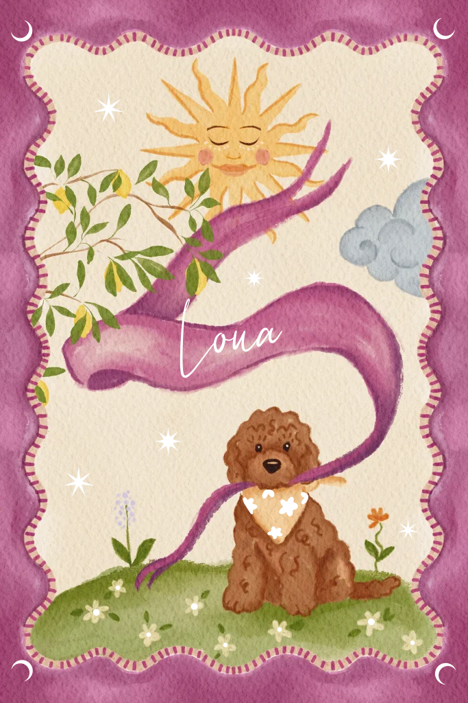 Een kaartje met de super populaire labradoodle kan niet ontbreken in onze collectie. Het geboortekaartje is verkrijgbaar in het blauw en in het paars roze met een zon of een maan.