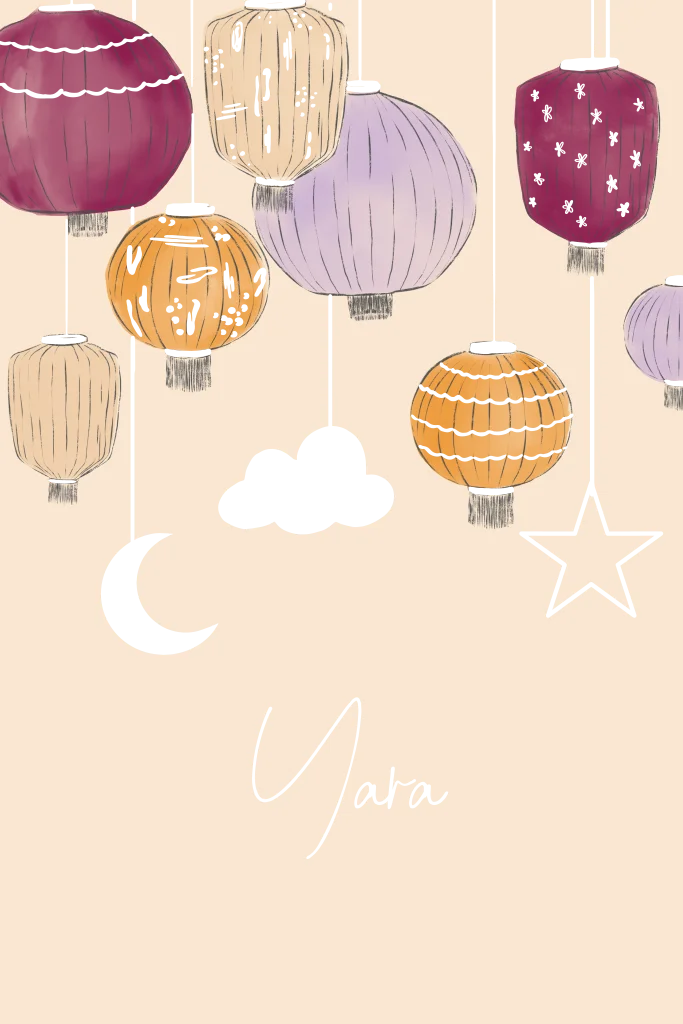 Geboortekaartje kleurrijke lampionnen