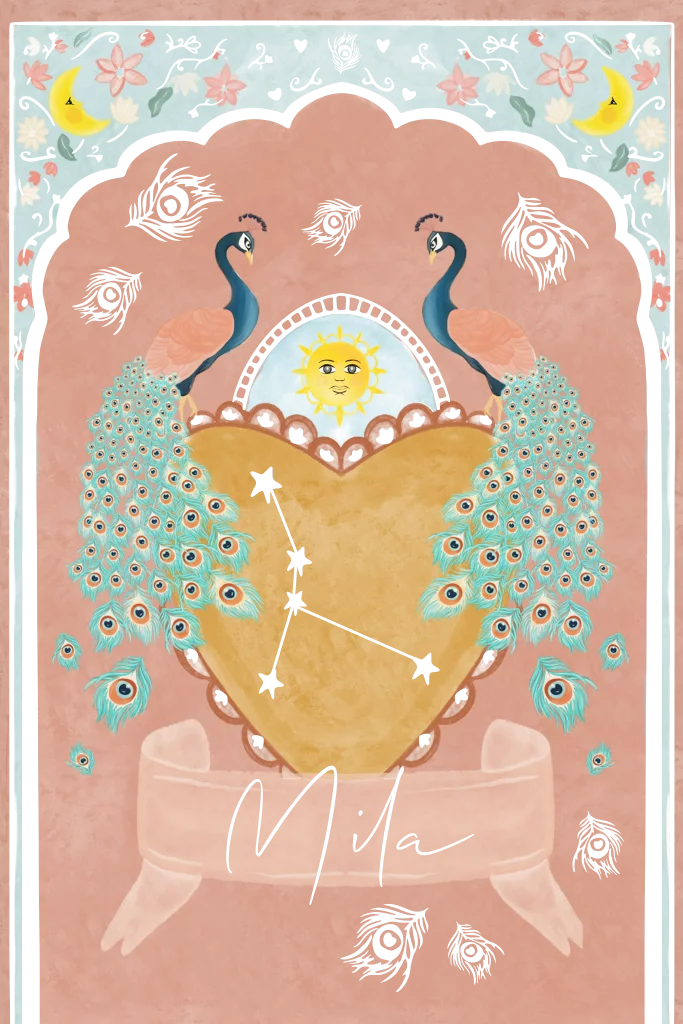 Zo trots als een pauw! Kondig de geboorte van je kleine meid aan met dit kaartje vol kleine details. Het sterrenbeeld kun je weglaten of aanpassen aan de geboortedatum.