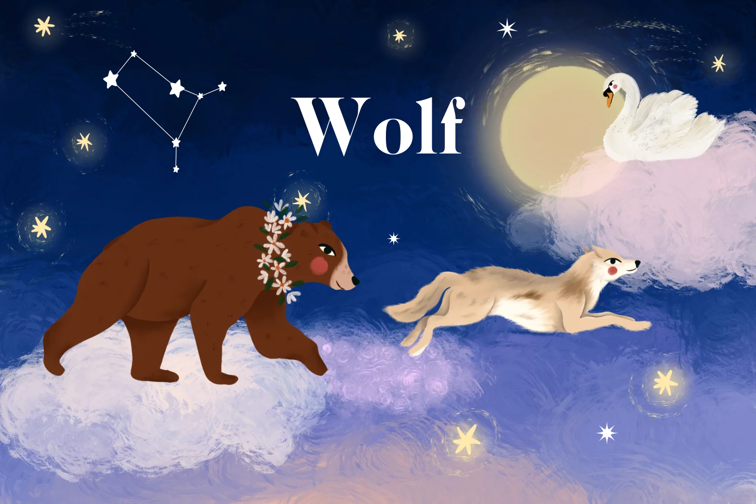 Geboortekaartje sprookjes droom beer, wolf en zwaan