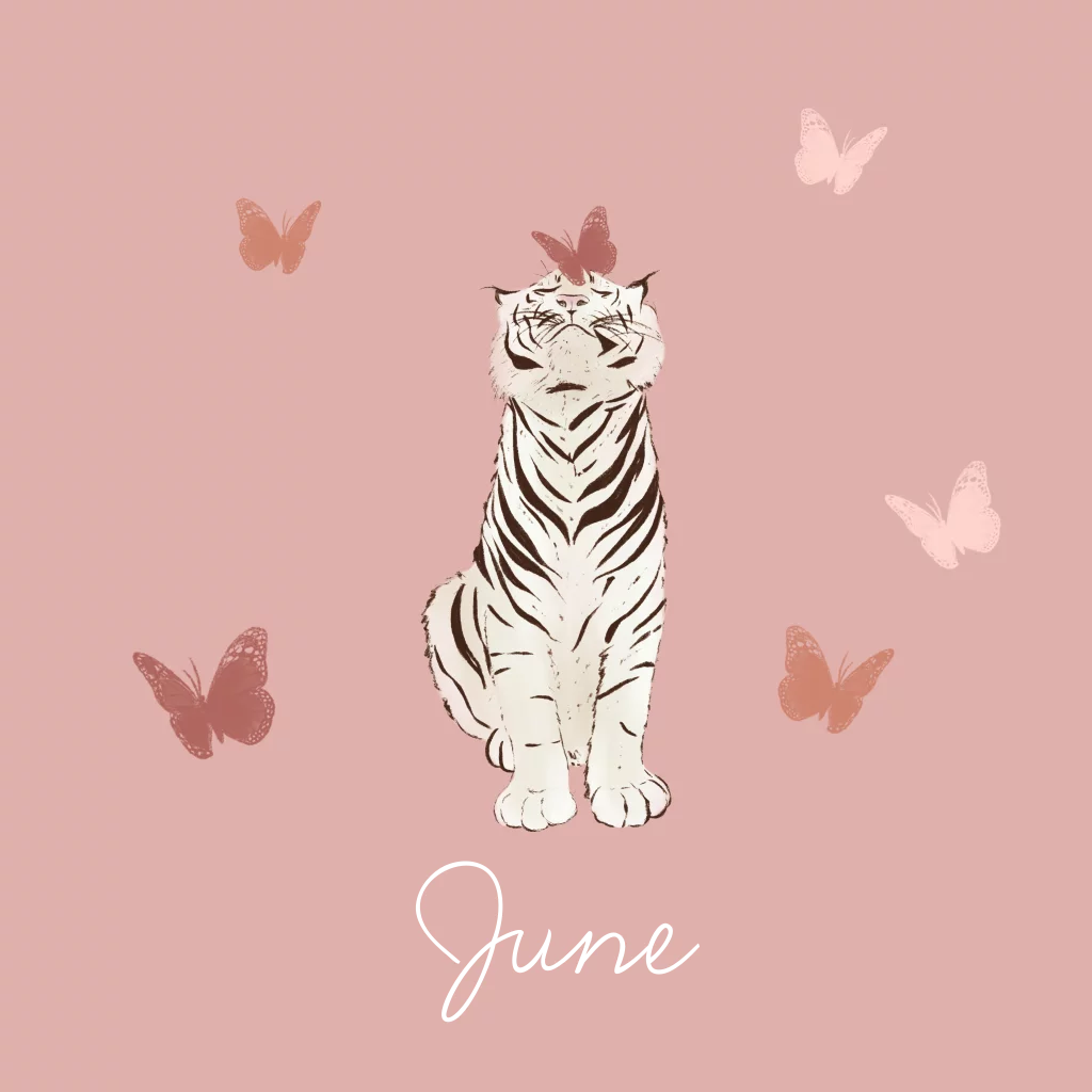 Geboortekaartje witte tijger en vlinders roze