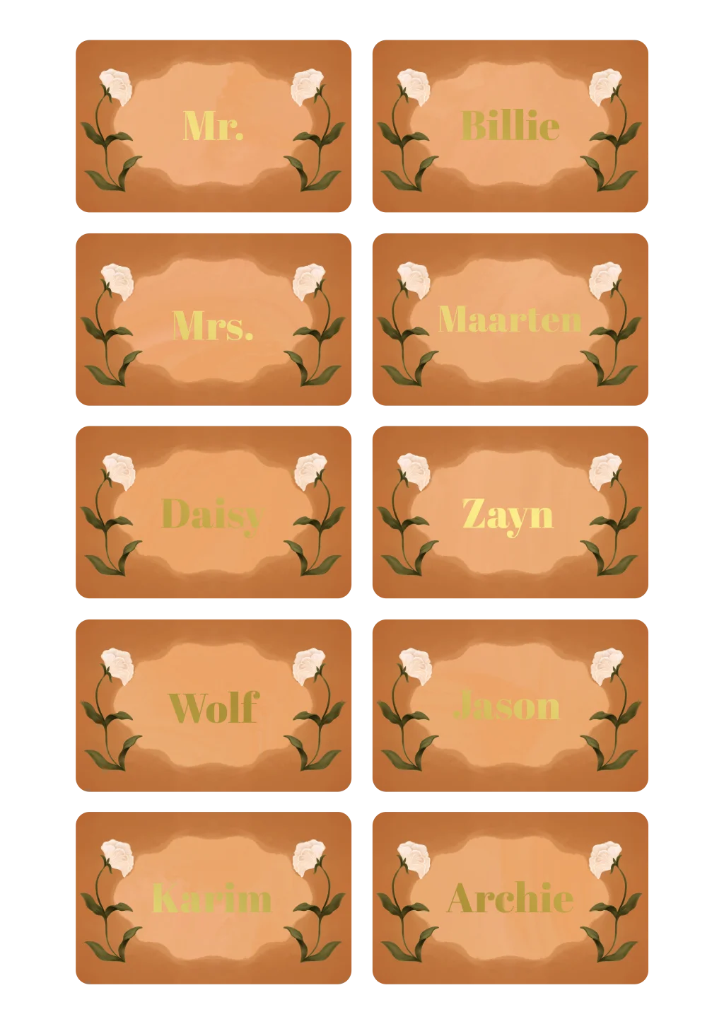 Klassieke naamkaartjes om jouw gasten hun plaatst aan de tafel te wijzen.
