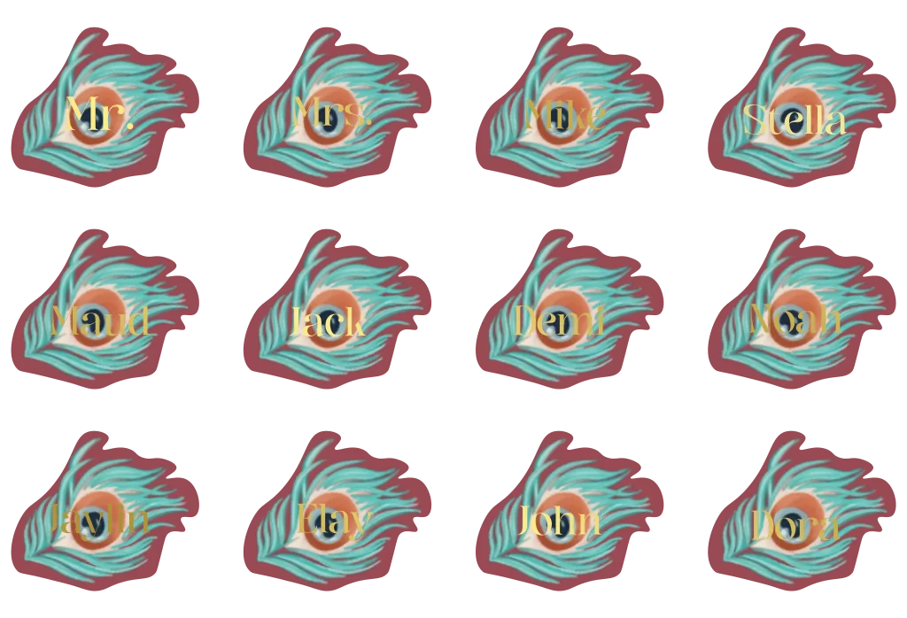 Vertel zo trots als een pauw op welke plek jouw gasten mogen plaatsnemen. Heel originele naamkaartjes in de vorm van de veer van een pauw.