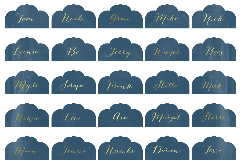 Naamkaartjes passend bij de trouwkaart met de zwanen. De vorm geeft een luxe uitstraling en doet je misschien wel denken aan een tempel.