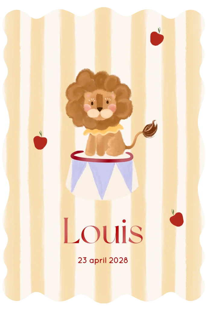 Dit kaartje met de leeuw heeft een originele vorm door de gegolfde randen. Het kaartje is verkrijgbaar in verschillende kleuren.
