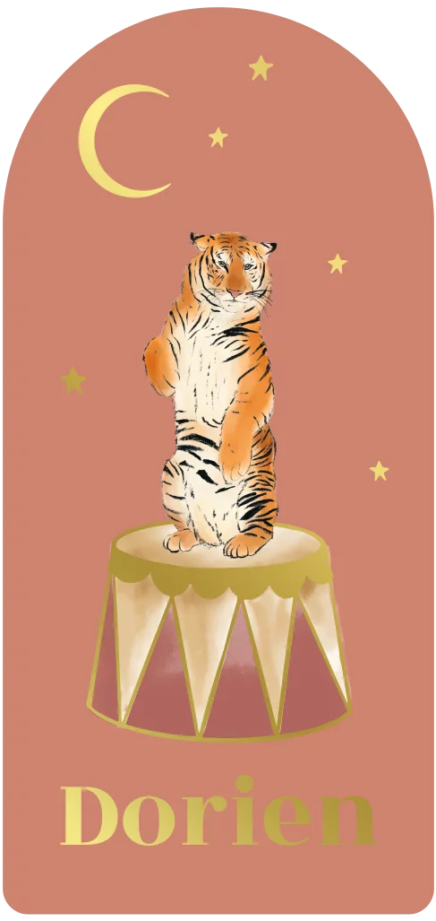 De circus tijger is een geboortekaartje met een boog vorm wat het kaartje net even anders maakt.