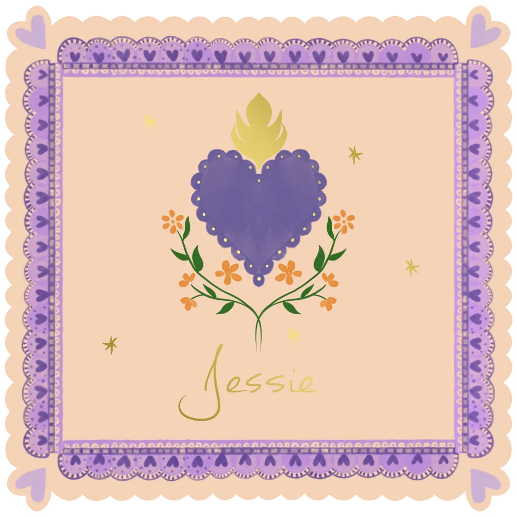 Geboortekaartje hart met bloemen beige en lila