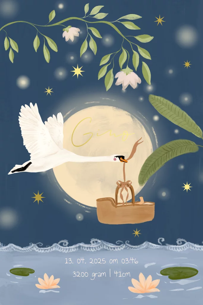 Geboortekaartje zwaan en baby blauw