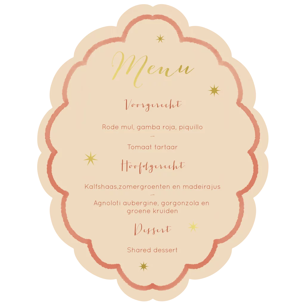 Deze menukaart sluit perfect aan bij de collectie met de lepelaars. De zachte kleuren zijn een mooie toevoeging.