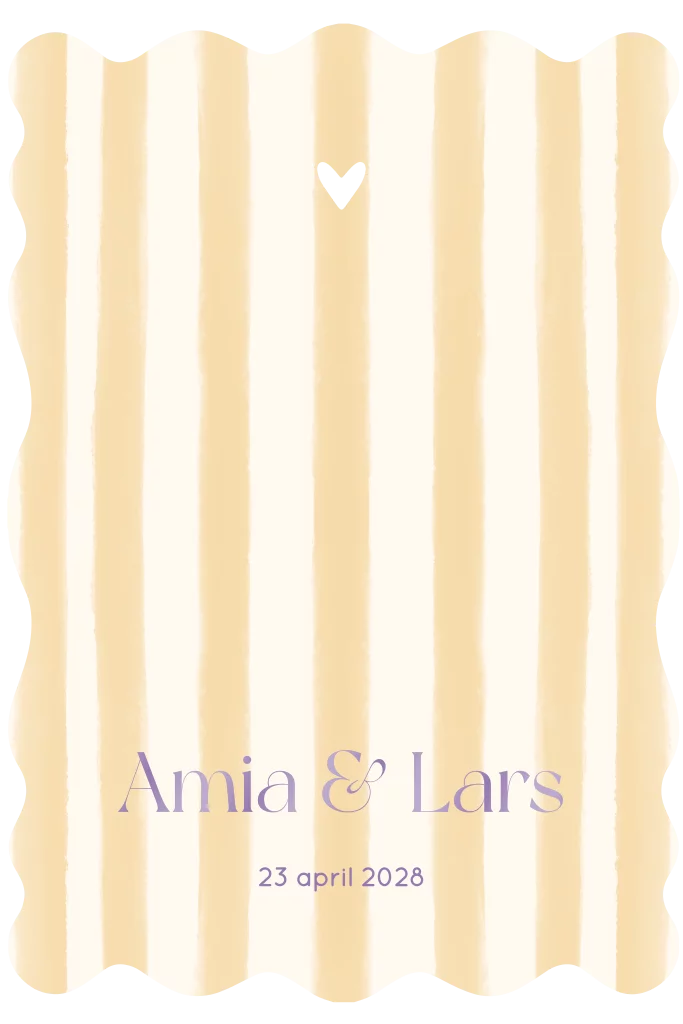 Dit kaartje heeft een originele vorm door de gegolfde randen. Het kaartje is verkrijgbaar in verschillende kleuren. Een mooie uitsnede in de vorm van een hartje.