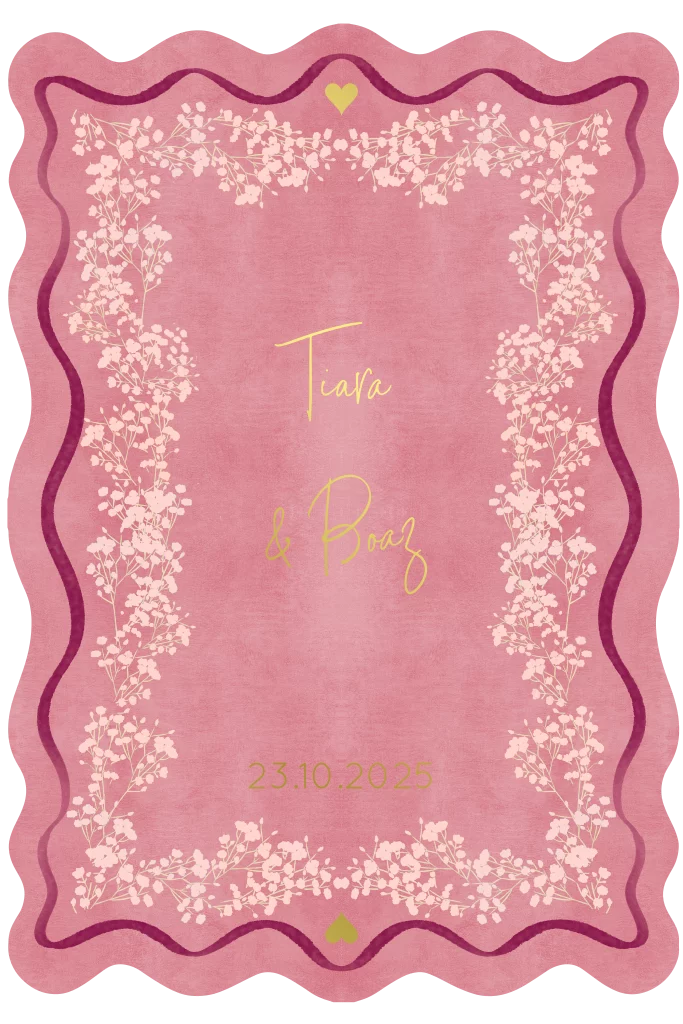 Deze trouwkaart heeft een originele vorm door de gegolfde randen. Het kaartje is verkrijgbaar in verschillende kleuren.