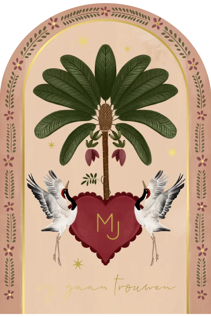 Dit is nog eens sierlijk je bruiloft aankondigen. De kraanvogel staat bekend als echte geluksbrenger en laat dat nu perfect passen bij zo'n mooie dag.