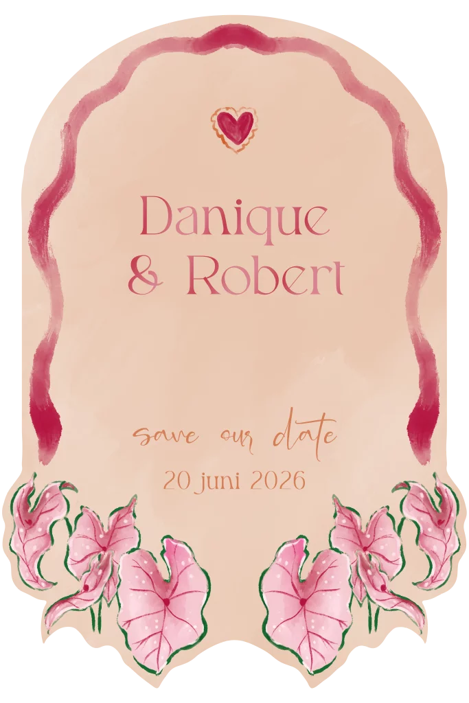 Een sierlijke trouwkaart met subtiele roze details. Je kunt het gebruiken als save the date kaart en als trouwkaart.