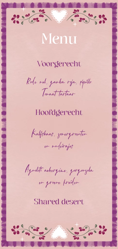 Passend bij de bohemian trouwkaart vind je deze menukaarten in dezelfde stijl.