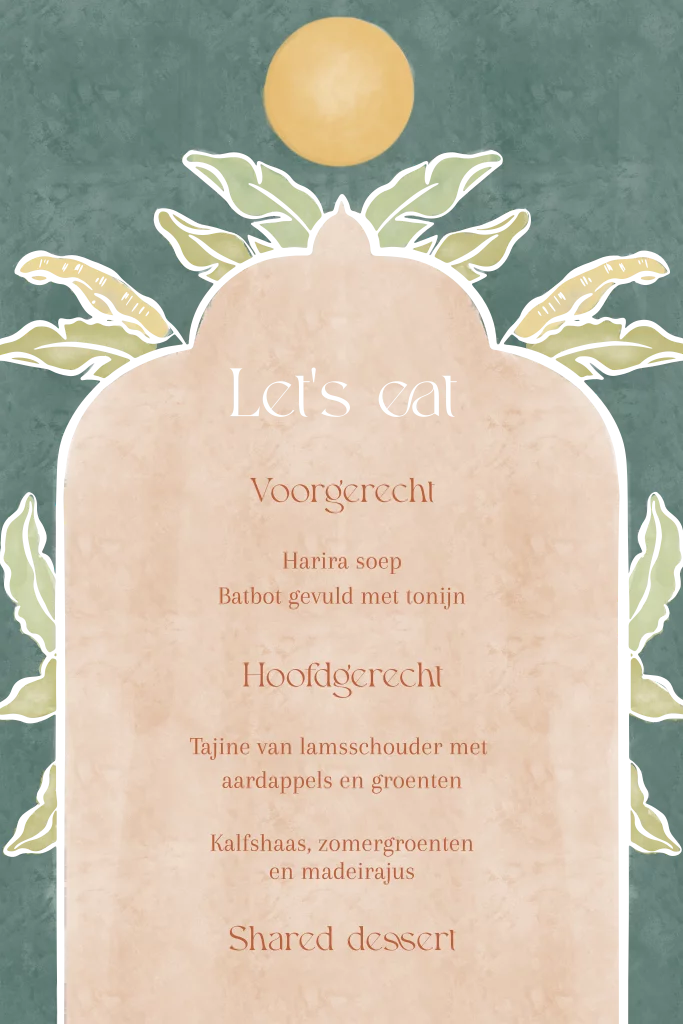 Passend bij de trouwkaart met de Indische olifanten. Grote palmbladen met gouden details.