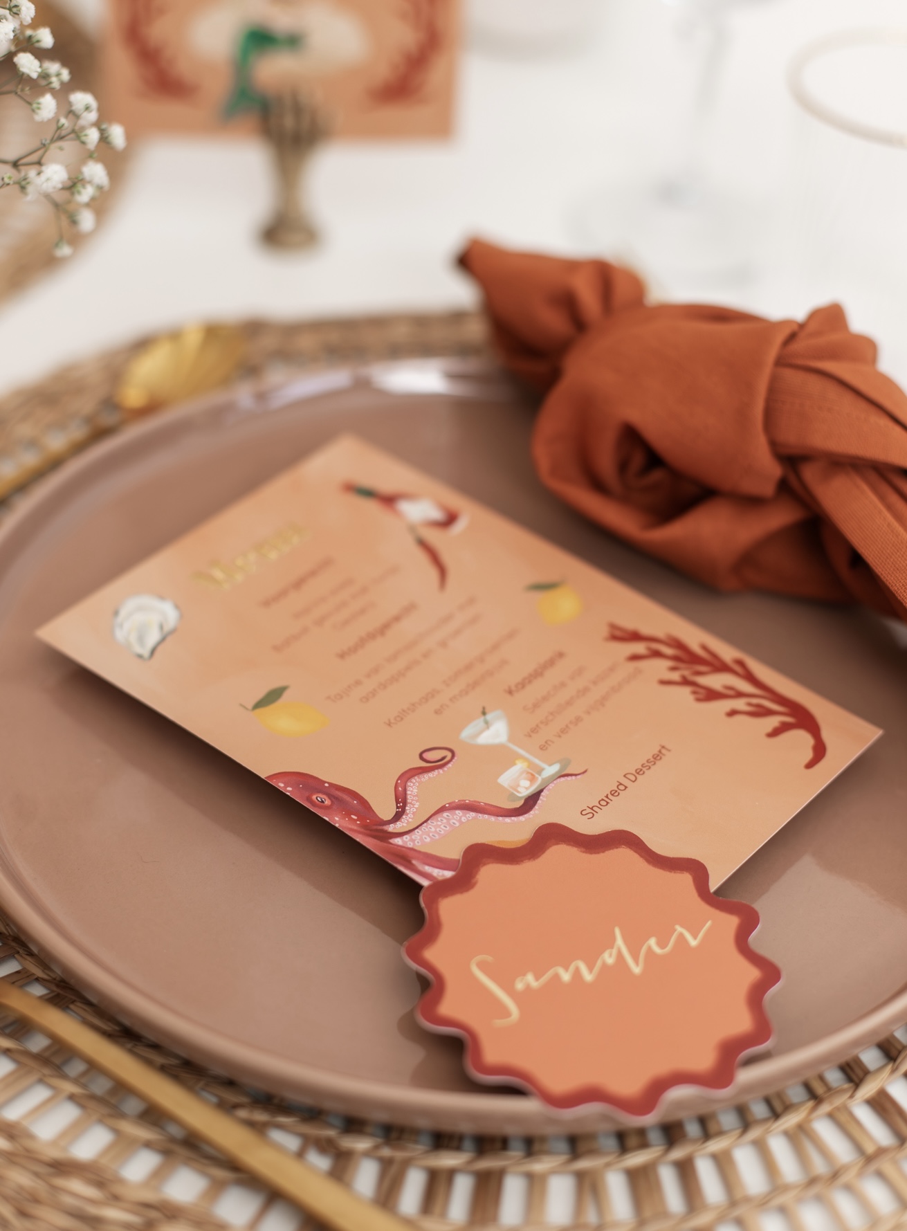 Menukaart uit de collectie met de zeemeermin. Het zeethema komt hier helemaal in terug met een knipoog naar de onderwaterwereld.