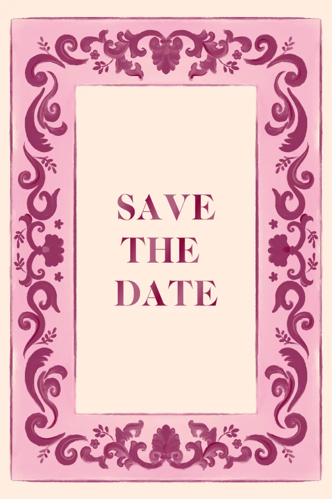 Een klassiek save the date kaartje. Het doet je denken aan ornamenten.