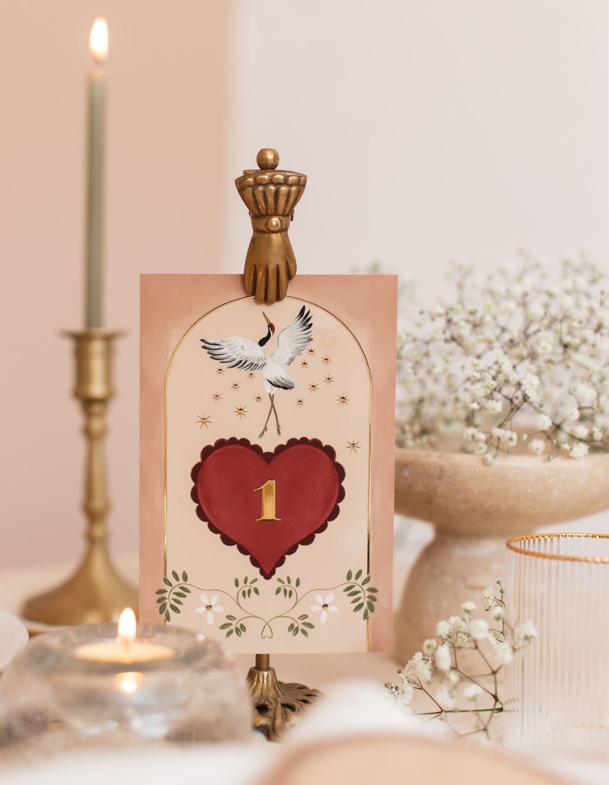 Passend bij de trouwkaart met de kraanvogel. Deze geluksvogel staat toch prachtig bij jullie op de tafels tijdens het diner?