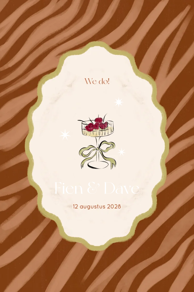 Een save the date kaart met een zebra patroon in bruin tinten.