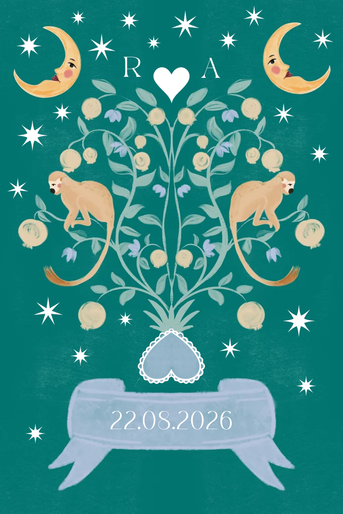 Trouwkaart apen petrol