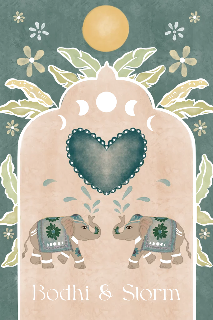 Trouwkaart Indische olifanten petrol